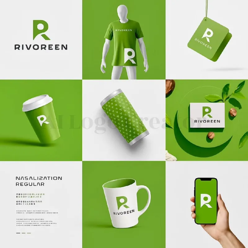 Rivoreen Logo Mockups - Diverse Brand Kits (Apparel, Cups, Tech)